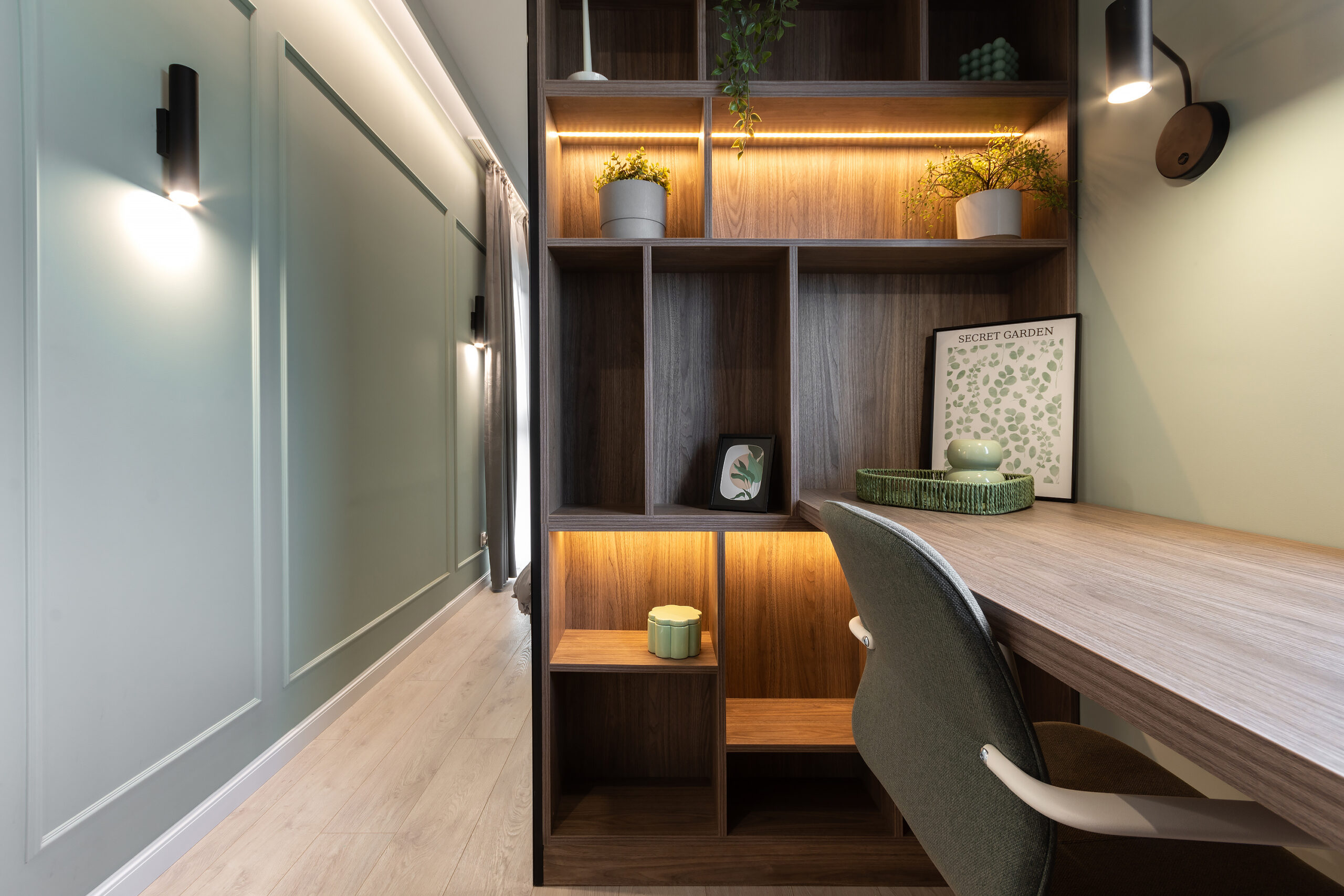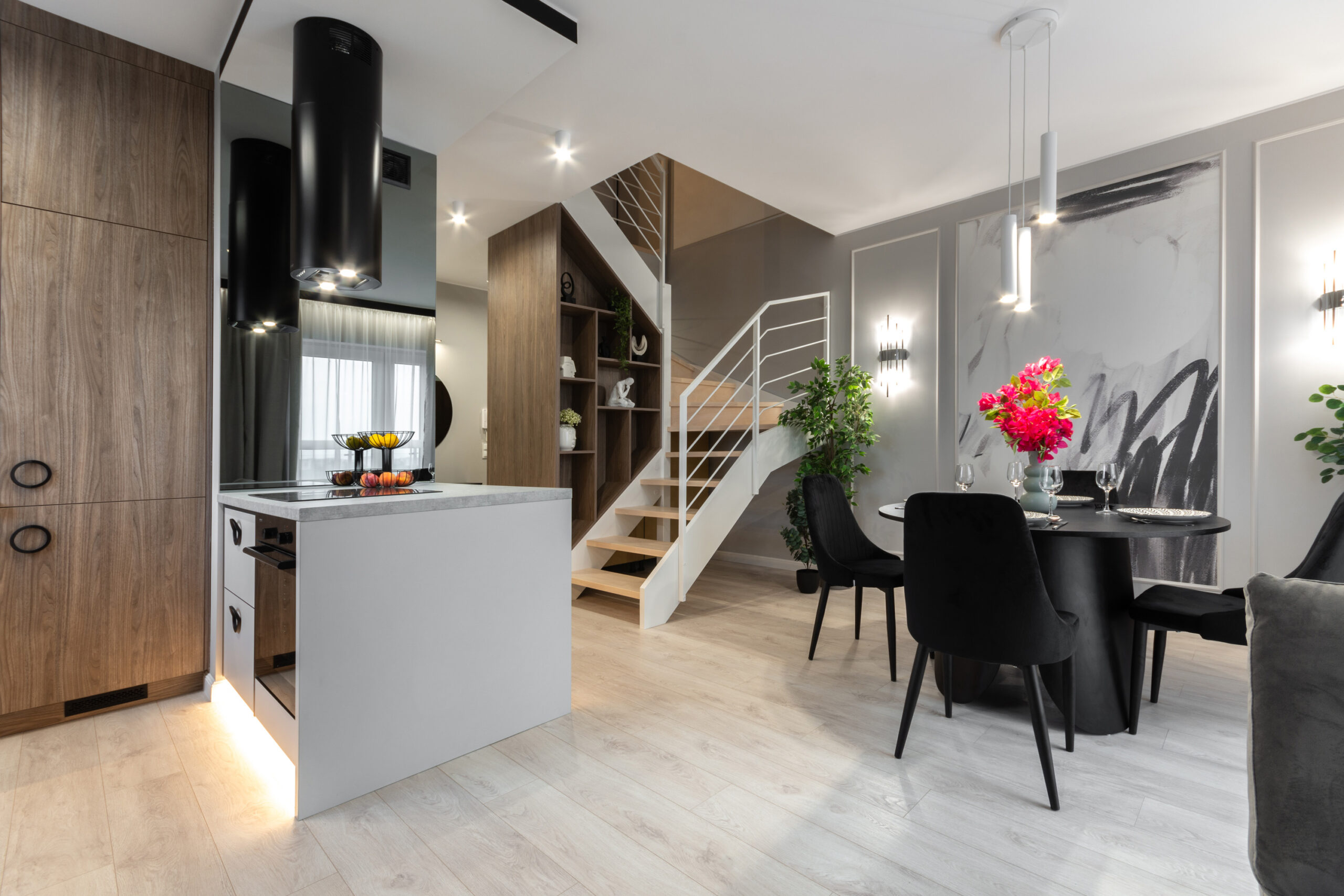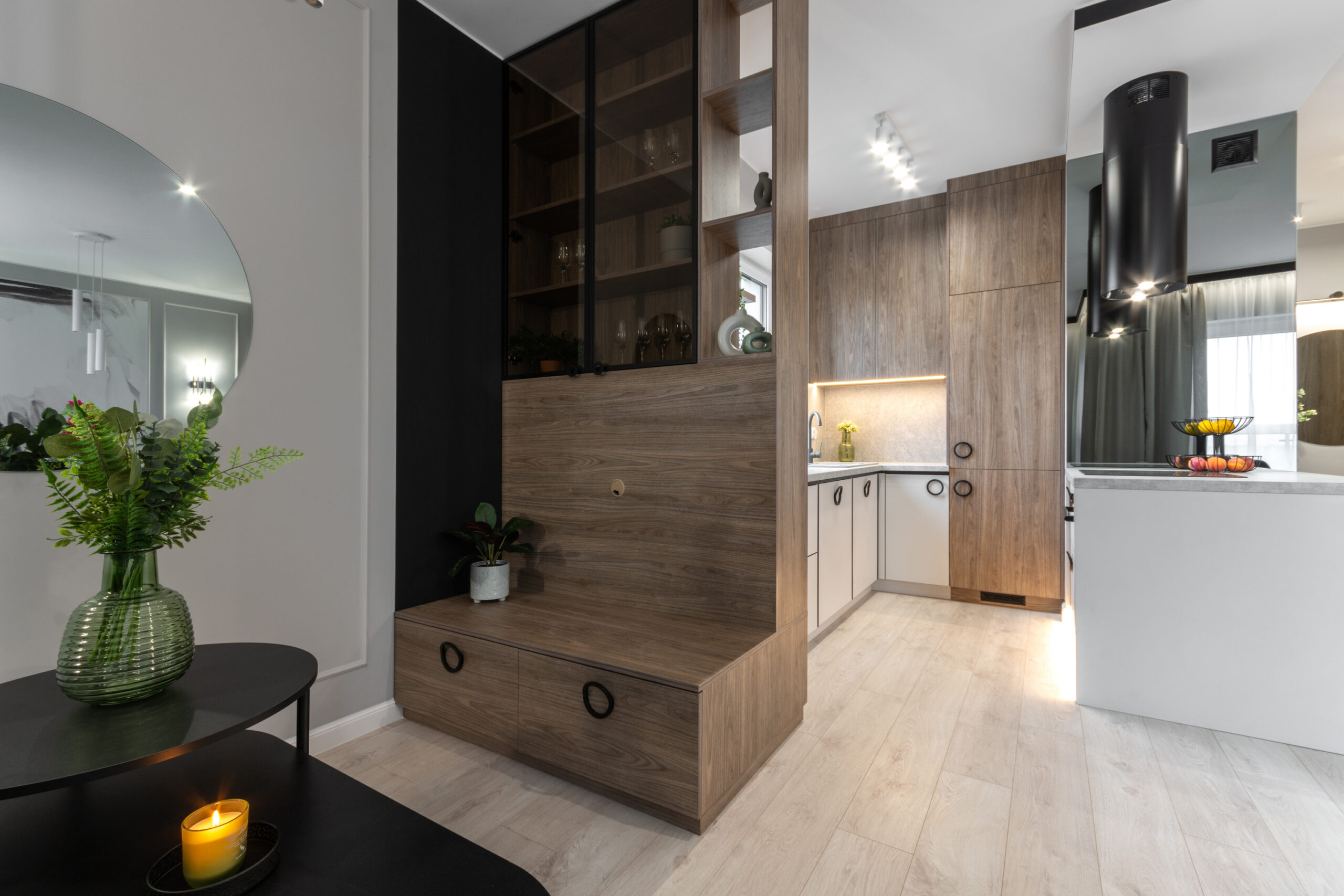 Mieszkanie zostało zaprojektowane i wykończone w pakiecie Premium. Inwestor chciał osiągnąć efekt nowoczesnego i jednocześnie przytulnego mieszkania.
