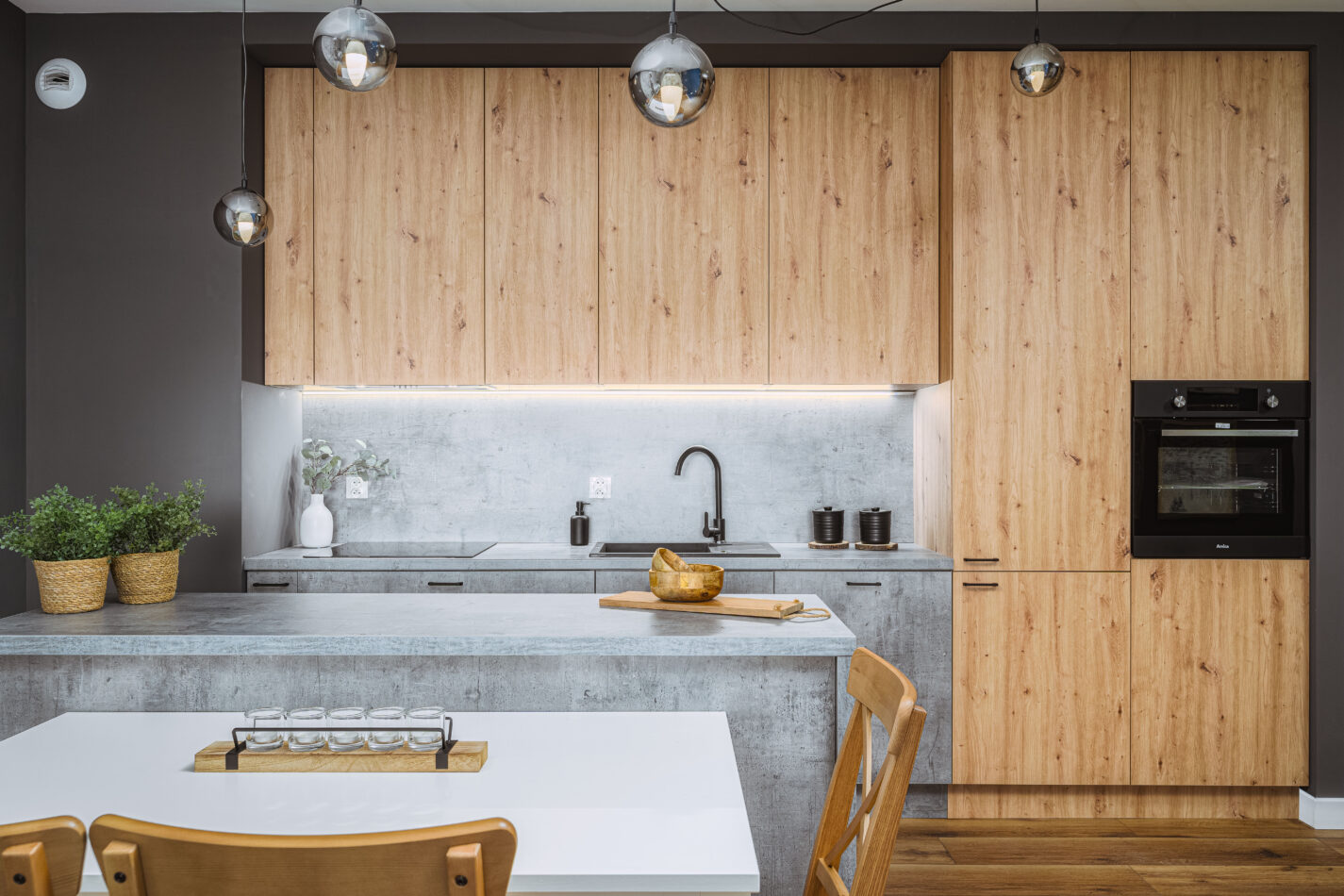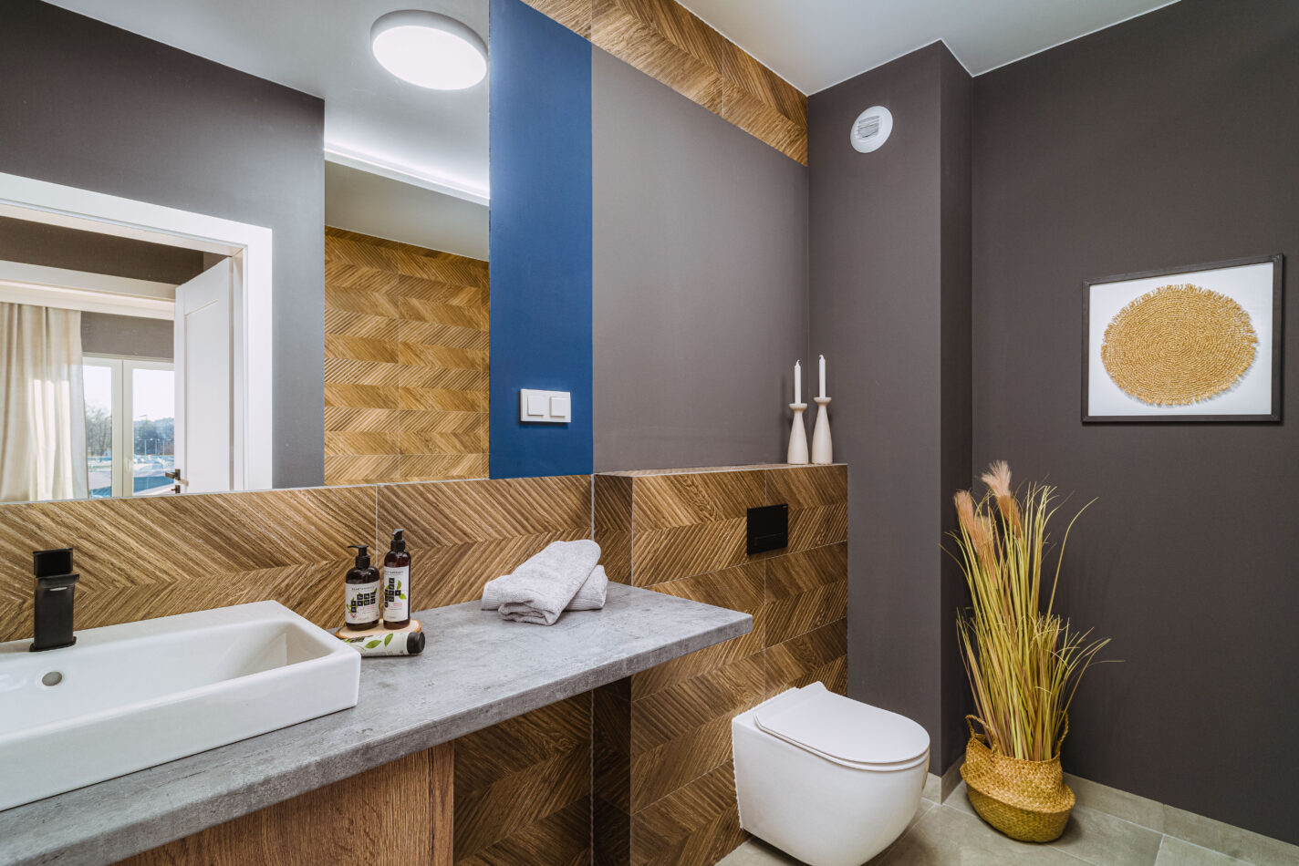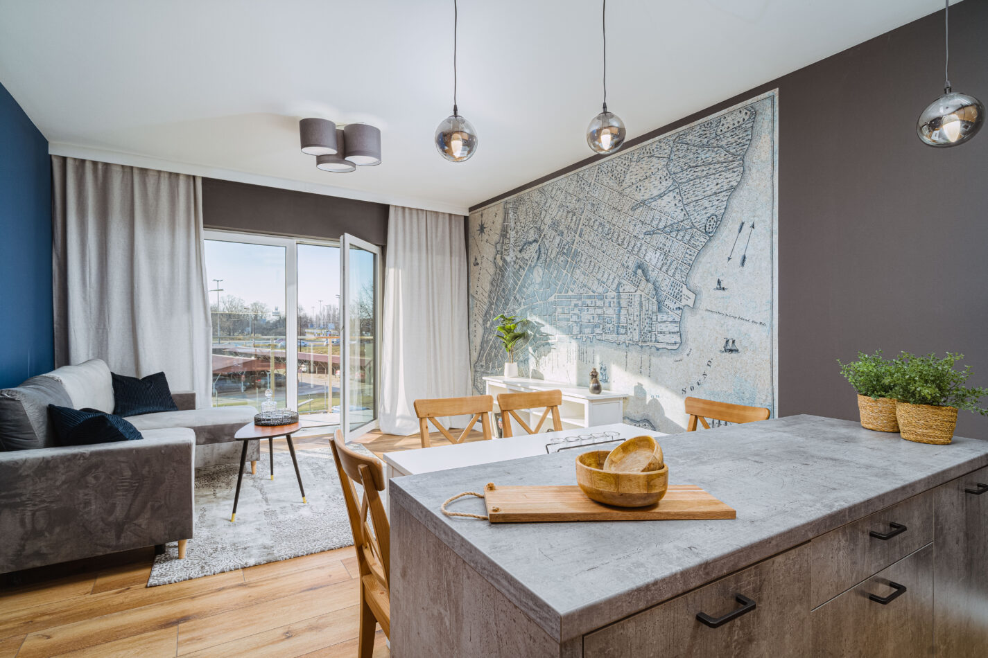 Mieszkanie zostało zaprojektowane i wykończone w pakiecie Złotym. Inwestor chciał osiągnąć efekt nowoczesnego i jednocześnie przytulnego mieszkania. W zakres realizacji nie wchodziły meble oraz wyposażenie.